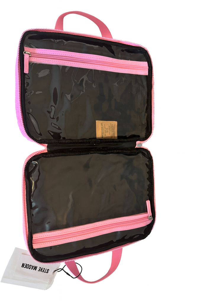 Precioso bolso de la marca Steve Madden, ideal para usarlo en tus viajes, para tu maquillaje, ropa interior o darle el uso que sea más conveniente para ti.