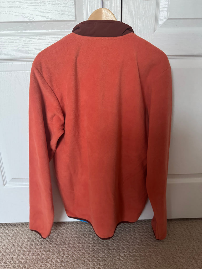 Mantente abrigado con estilo con esta chaqueta polar Columbia, diseñada en un moderno contraste de naranja vibrante y burdeo. Fabricada en fleece suave y térmico, ofrece una sensación cálida y ligera, ideal para días fríos, actividades al aire libre o uso diario.